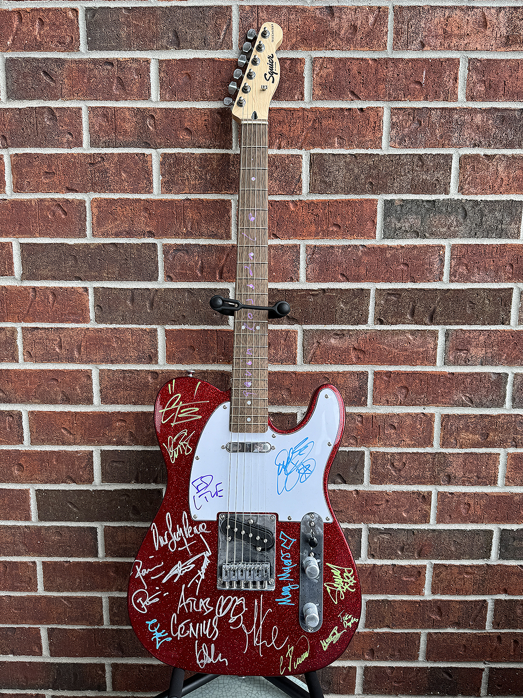 Fender Squier Telecaster Guitar autographed by musical artists at BuzzFest 48. Includes members of Bush, Godsmack, LIVE, Our Lady Peace, Atlas Genius, Hold on Hollywood, and Meg Myers. Courtesy of KTBZ FM in Houston.